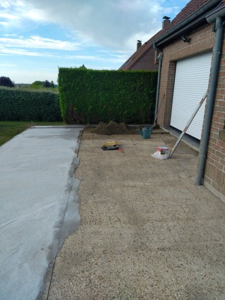 Votre paysagiste vous présente sa dernière réalisation : une extension de terrasse , chappe , carrelage sur la commune de Cassel.